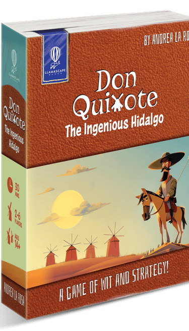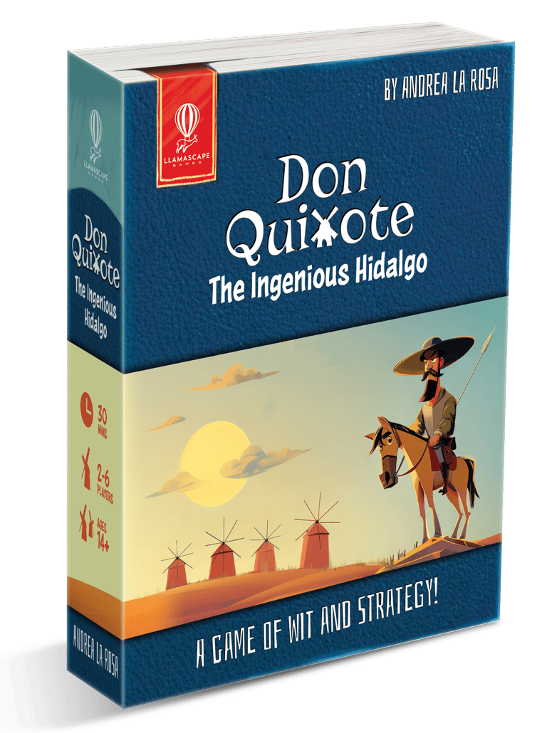 It was my 1st time working on a game where AI was used to generate the illustrations, so it was a learning process. I was able to prepare a few box versions before the final one, where I polished the AI generated illustration of Don Quixote.